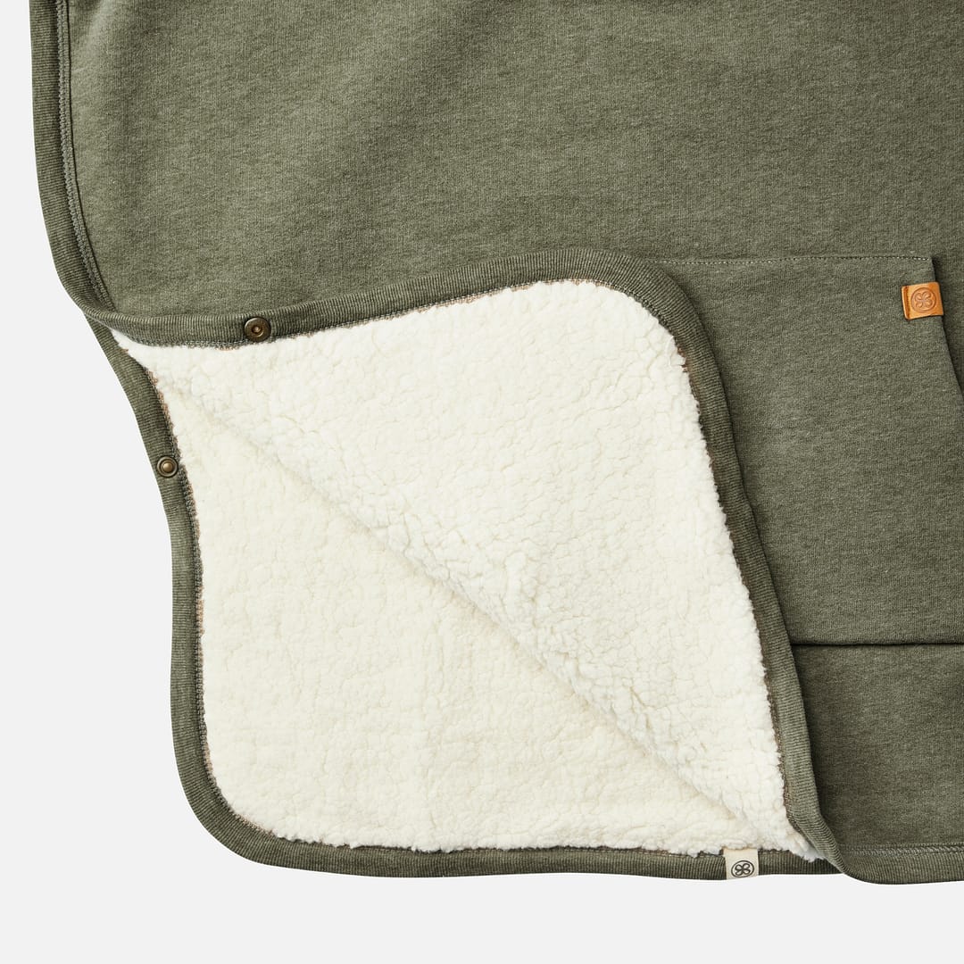 - Eine Seite besteht aus 100% Bio-Baumwolle, die andere Seite ist mit recyceltem Teddy-Polyester gefüttert.
